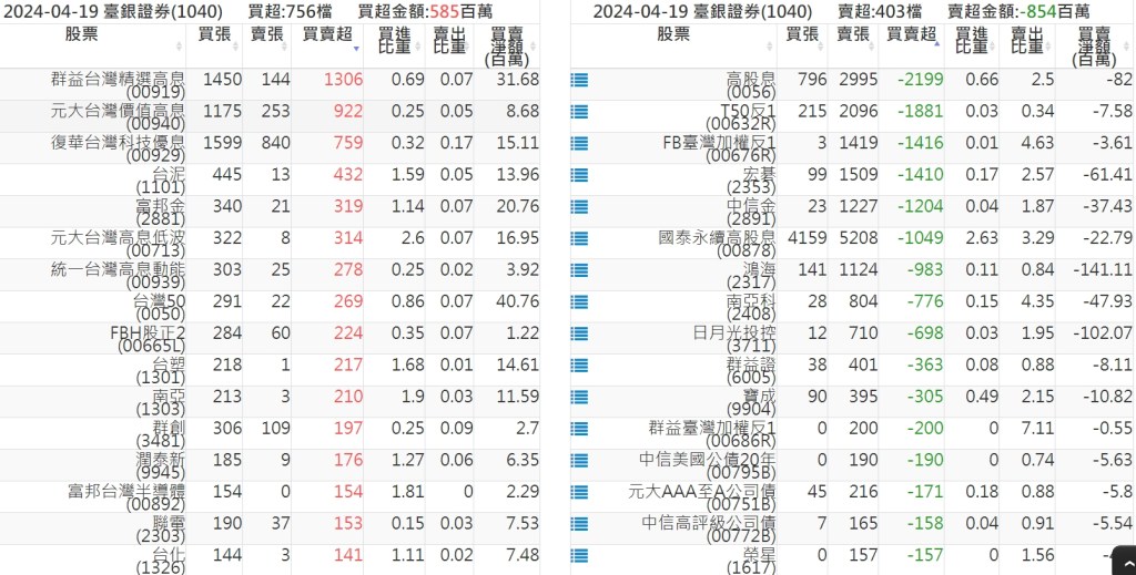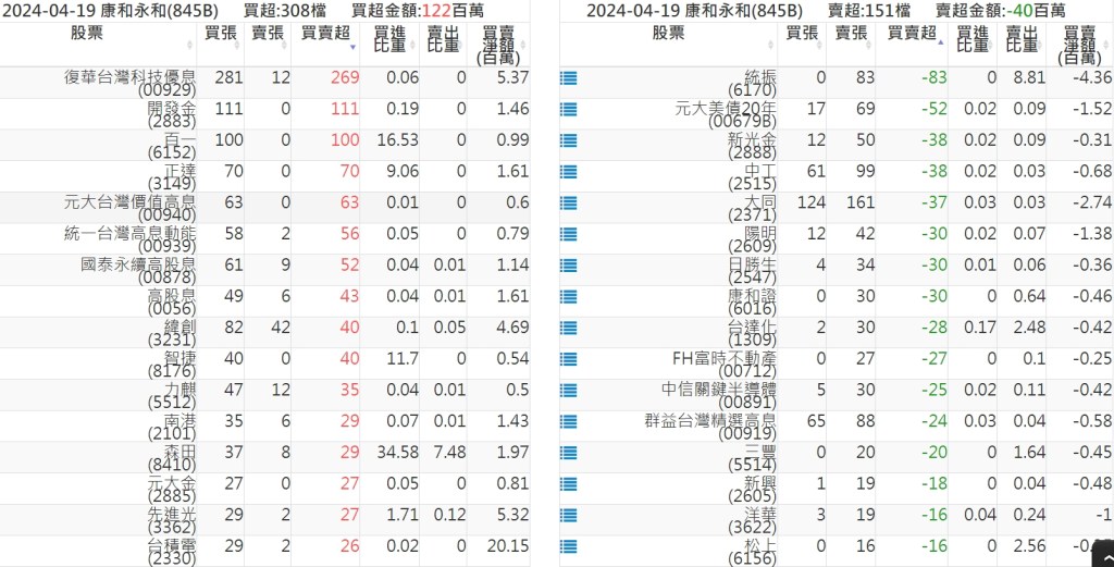 2024-0419關鍵券商買賣超 2024-04-19 股狗網小編 籌碼面每日資訊 發表留言 關鍵券商買賣超: 臺銀證券(1040): 台灣摩根士丹利(1470): 凱基台北(9268): 凱基信義(9216): 元大土城永寧(9875): 康和永和(845B) : 富邦建國(9658): 免責宣言 本網站文章所提供資訊僅供參考,並無任何推介買賣之意,投資人應自行承擔交易風險。 分享此文: 分享到 X(在新視窗中開啟) X 分享到 Facebook(在新視窗中開啟) Facebook 喜歡 正在載入...