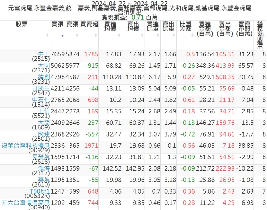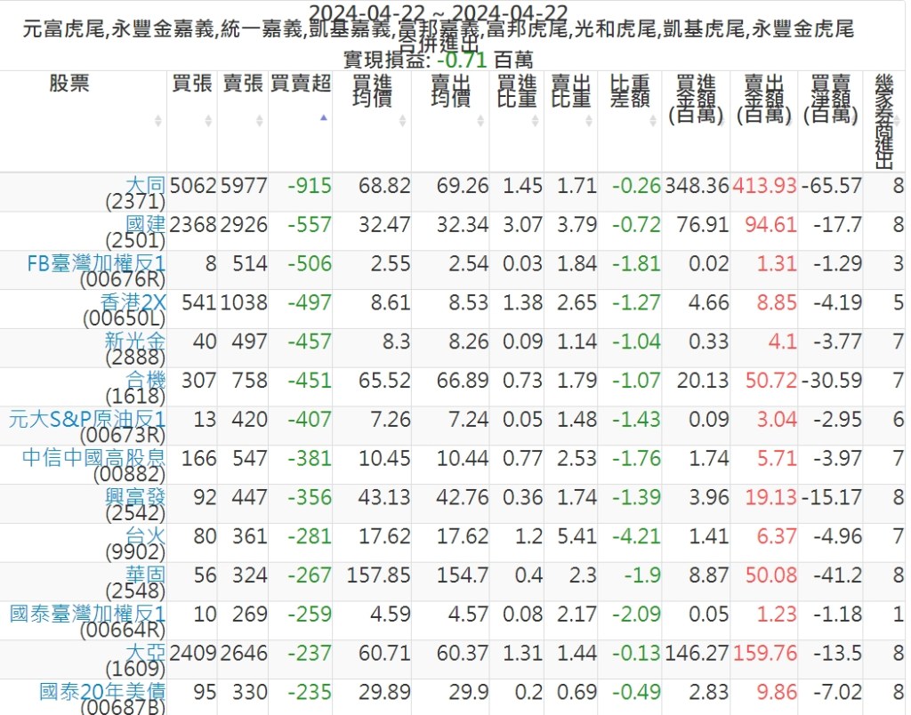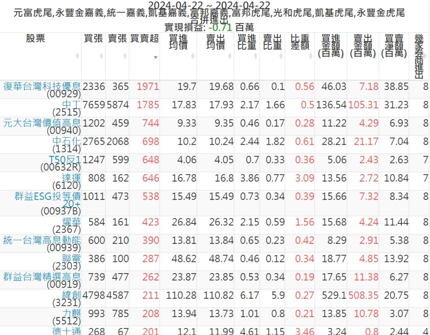2024-0422主力買賣超個股 2024-04-22 股狗網小編 籌碼面每日資訊 發表留言 可參考下文 『如何查詢當沖、隔日沖分公司券商買賣』 主力當沖券商: 『元富虎尾』,『永豐金嘉義』,『統一嘉義』,『凱基嘉義』,『富邦嘉義』,『富邦虎尾』,『光和虎尾』,『凱基虎尾』,『永豐金虎尾』。 『當沖標的』 『買超股票』 『賣超股票』 免責宣言 本網站文章所提供資訊僅供參考,並無任何推介買賣之意,投資人應自行承擔交易風險。 分享此文: 分享到 X(在新視窗中開啟) X 分享到 Facebook(在新視窗中開啟) Facebook 喜歡 正在載入...