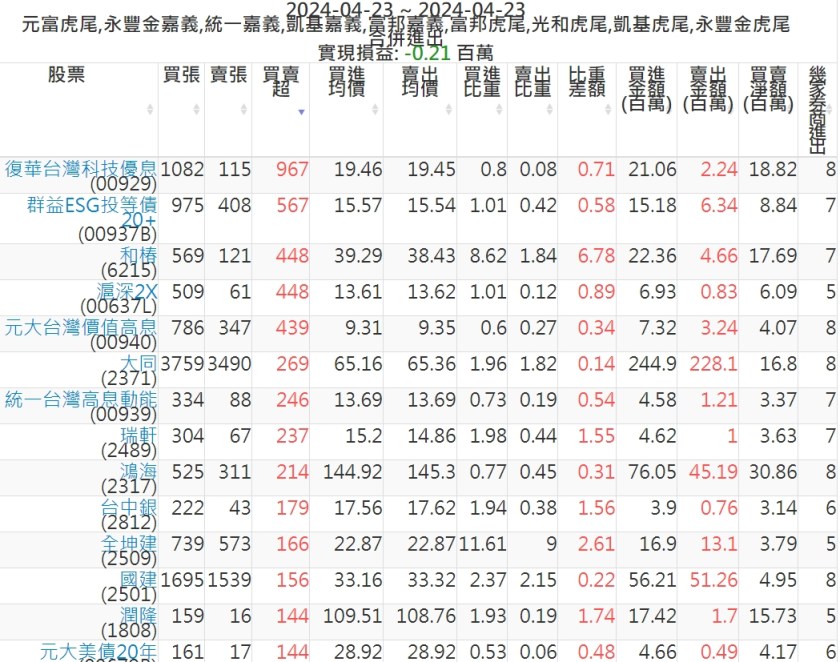 2024-0423主力買賣超個股 2024-04-23 股狗網小編 籌碼面每日資訊 發表留言 可參考下文 『如何查詢當沖、隔日沖分公司券商買賣』 主力當沖券商: 『元富虎尾』,『永豐金嘉義』,『統一嘉義』,『凱基嘉義』,『富邦嘉義』,『富邦虎尾』,『光和虎尾』,『凱基虎尾』,『永豐金虎尾』。 『當沖標的』 『買超股票』 『賣超股票』 免責宣言 本網站文章所提供資訊僅供參考,並無任何推介買賣之意,投資人應自行承擔交易風險。 分享此文: 分享到 X(在新視窗中開啟) X 分享到 Facebook(在新視窗中開啟) Facebook 喜歡 正在載入...