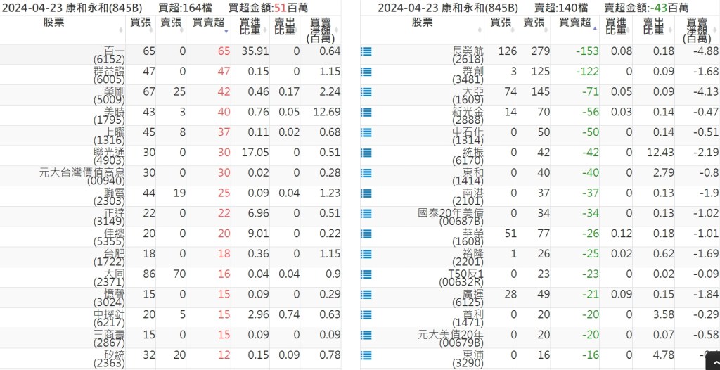 2024-0423關鍵券商買賣超 2024-04-23 股狗網小編 籌碼面每日資訊 發表留言 關鍵券商買賣超: 臺銀證券(1040): 台灣摩根士丹利(1470): 凱基台北(9268): 凱基信義(9216): 元大土城永寧(9875): 康和永和(845B) : 富邦建國(9658): 免責宣言 本網站文章所提供資訊僅供參考,並無任何推介買賣之意,投資人應自行承擔交易風險。 分享此文: 分享到 X(在新視窗中開啟) X 分享到 Facebook(在新視窗中開啟) Facebook 喜歡 正在載入...