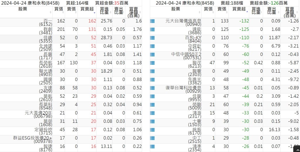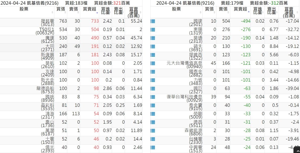 2024-0424關鍵券商買賣超 2024-04-24 股狗網小編 籌碼面每日資訊 發表留言 關鍵券商買賣超: 臺銀證券(1040): 台灣摩根士丹利(1470): 凱基台北(9268): 凱基信義(9216): 元大土城永寧(9875): 康和永和(845B) : 富邦建國(9658): 免責宣言 本網站文章所提供資訊僅供參考,並無任何推介買賣之意,投資人應自行承擔交易風險。 分享此文: 分享到 X(在新視窗中開啟) X 分享到 Facebook(在新視窗中開啟) Facebook 喜歡 正在載入...