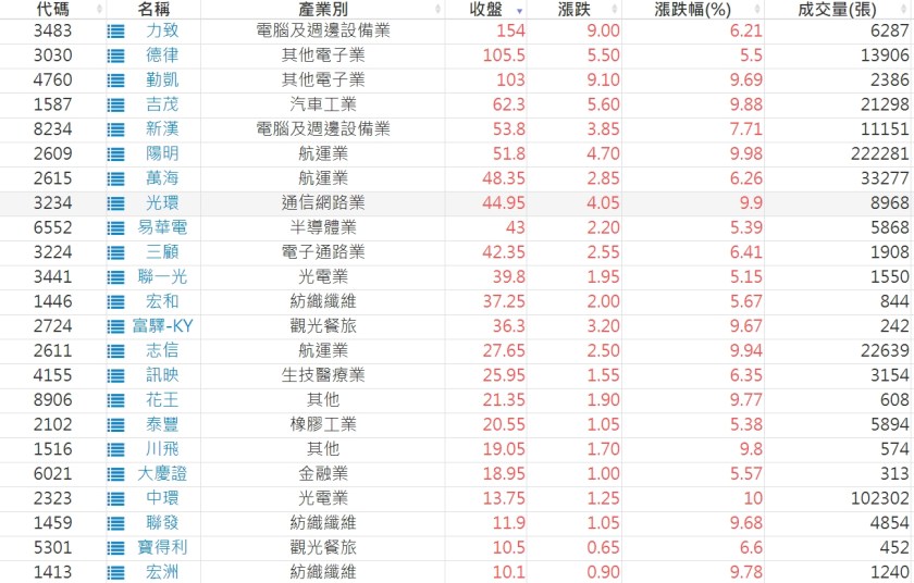 2024-0426日新高爆量上漲股 2024-04-26 股狗網小編 選股條件 發表留言 利用股狗選股的選股條件可以【挑選突破20日新高,爆量上漲起漲點股票】 1.股狗選股 https://www.stockdog.com.tw 2.選股條件: a.收盤價創20日新高 b.當日漲幅 > 2% C.成交量大於5日均量2倍 免責宣言 本網站文章所提供資訊僅供參考,並無任何推介買賣之意,投資人應自行承擔交易風險。 分享此文: 分享到 X(在新視窗中開啟) X 分享到 Facebook(在新視窗中開啟) Facebook 喜歡 正在載入...