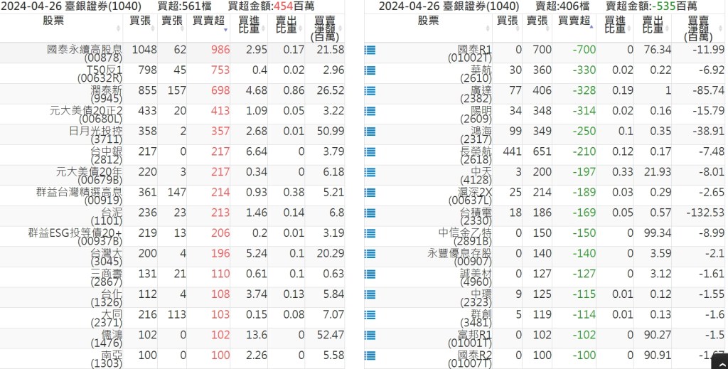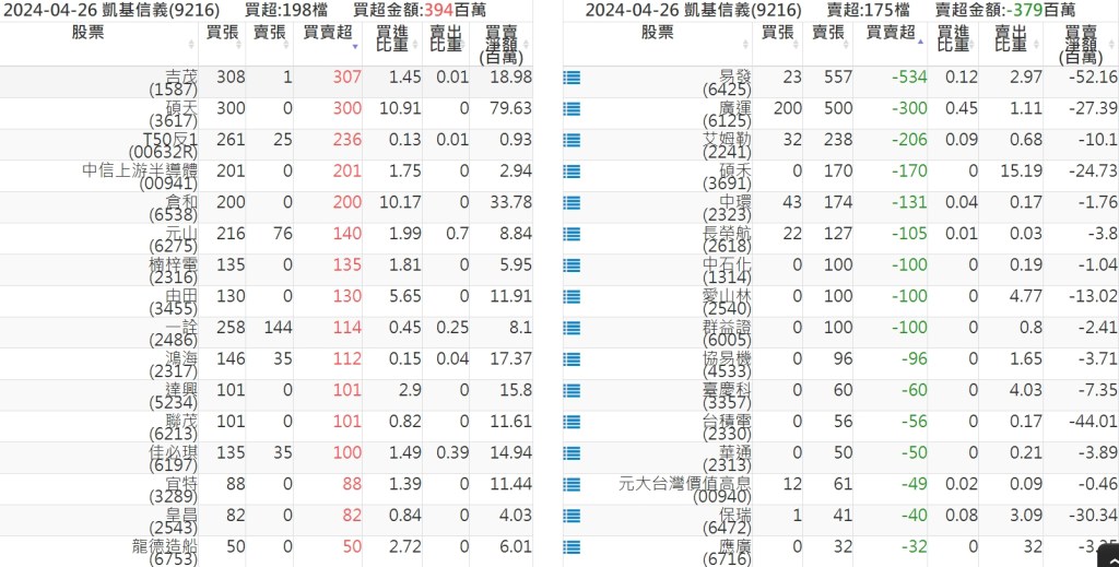 2024-0426關鍵券商買賣超 2024-04-26 股狗網小編 籌碼面每日資訊 發表留言 關鍵券商買賣超: 臺銀證券(1040): 台灣摩根士丹利(1470): 凱基台北(9268): 凱基信義(9216): 元大土城永寧(9875): 康和永和(845B) : 富邦建國(9658): 免責宣言 本網站文章所提供資訊僅供參考,並無任何推介買賣之意,投資人應自行承擔交易風險。 分享此文: 分享到 X(在新視窗中開啟) X 分享到 Facebook(在新視窗中開啟) Facebook 喜歡 正在載入...