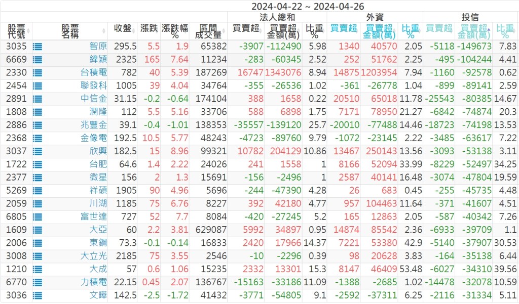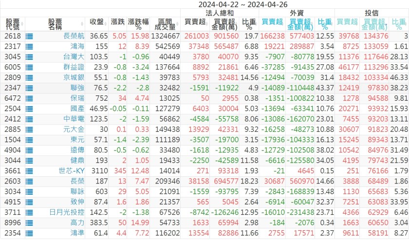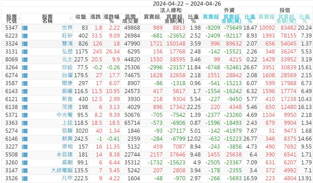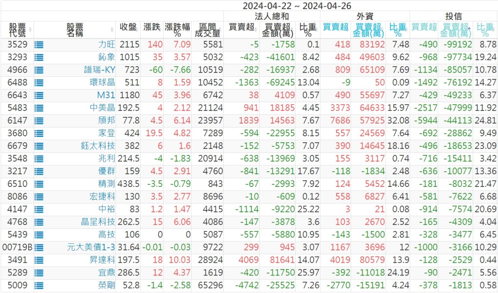 2024/04/22~2024/04/26近5日【投信】買賣超個股 2024-04-28 股狗網小編 投資誌-大盤 發表留言 【上市投信買超個股】(以金額排行,單位:萬) 【上市投信賣超個股】(以金額排行,單位:萬) 【上櫃投信買超個股】(以金額排行,單位:萬) 【上櫃投信賣超個股】(以金額排行,單位:萬) 免責宣言 本網站文章所提供資訊僅供參考,並無任何推介買賣之意,投資人應自行承擔交易風險。 分享此文: 分享到 X(在新視窗中開啟) X 分享到 Facebook(在新視窗中開啟) Facebook 喜歡 正在載入...