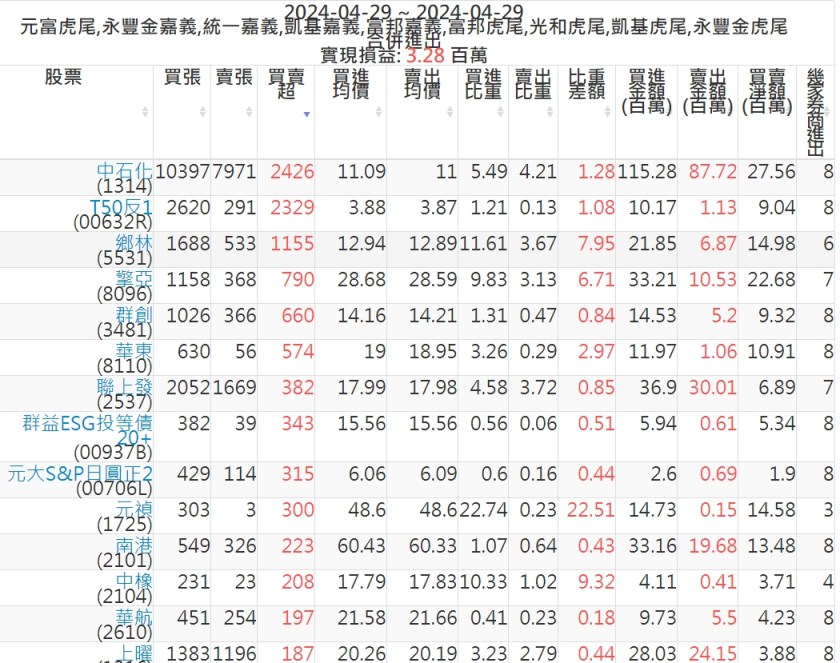 2024-0429主力買賣超個股 2024-04-29 股狗網小編 籌碼面每日資訊 發表留言 可參考下文 『如何查詢當沖、隔日沖分公司券商買賣』 主力當沖券商: 『元富虎尾』,『永豐金嘉義』,『統一嘉義』,『凱基嘉義』,『富邦嘉義』,『富邦虎尾』,『光和虎尾』,『凱基虎尾』,『永豐金虎尾』。 『當沖標的』 『買超股票』 『賣超股票』 免責宣言 本網站文章所提供資訊僅供參考,並無任何推介買賣之意,投資人應自行承擔交易風險。 分享此文: 分享到 X(在新視窗中開啟) X 分享到 Facebook(在新視窗中開啟) Facebook 喜歡 正在載入...