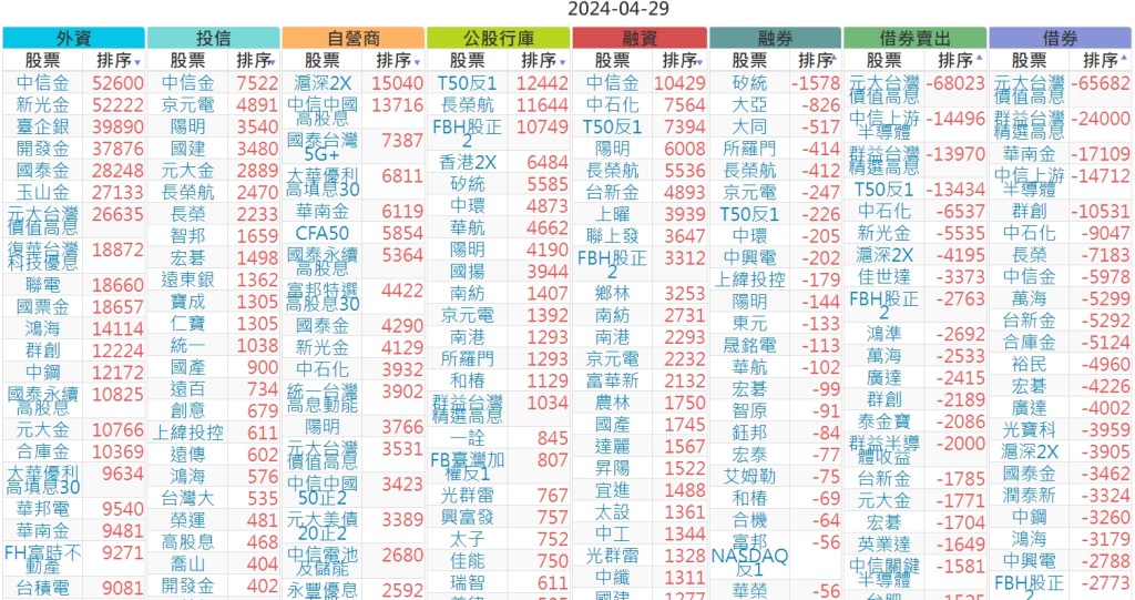 2024-0429市【外資、投信】買賣超個股 2024-04-30 股狗網小編 投資誌-大盤 發表留言 上市:【外資、投信】買超(依金額) (單位:百萬) 上市:【外資、投信】賣超(依金額) (單位:百萬) 上市:【外資、投信】買超(依張數) (單位:張數) 上市:【外資、投信】賣超(依張數) (單位:張數) 免責宣言 本網站文章所提供資訊僅供參考,並無任何推介買賣之意,投資人應自行承擔交易風險。 分享此文: 分享到 X(在新視窗中開啟) X 分享到 Facebook(在新視窗中開啟) Facebook 喜歡 正在載入...