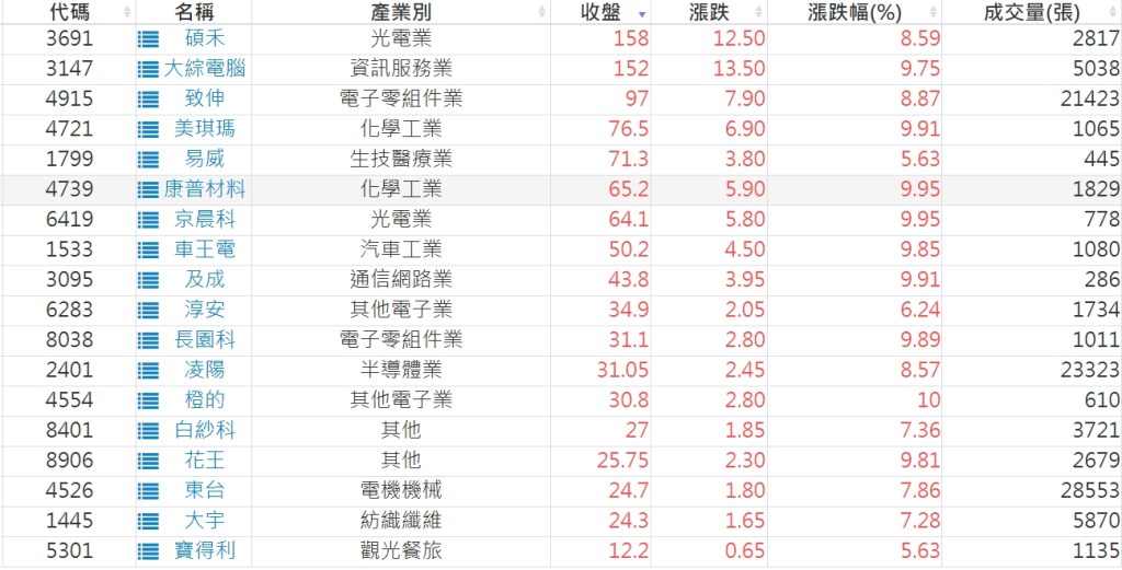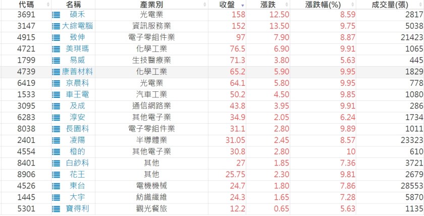 2024-0430日新高爆量上漲股 2024-04-30 股狗網小編 選股條件 發表留言 利用股狗選股的選股條件可以【挑選突破20日新高,爆量上漲起漲點股票】 1.股狗選股 https://www.stockdog.com.tw 2.選股條件: a.收盤價創20日新高 b.當日漲幅 > 2% C.成交量大於5日均量2倍 免責宣言 本網站文章所提供資訊僅供參考,並無任何推介買賣之意,投資人應自行承擔交易風險。 分享此文: 分享到 X(在新視窗中開啟) X 分享到 Facebook(在新視窗中開啟) Facebook 喜歡 正在載入...