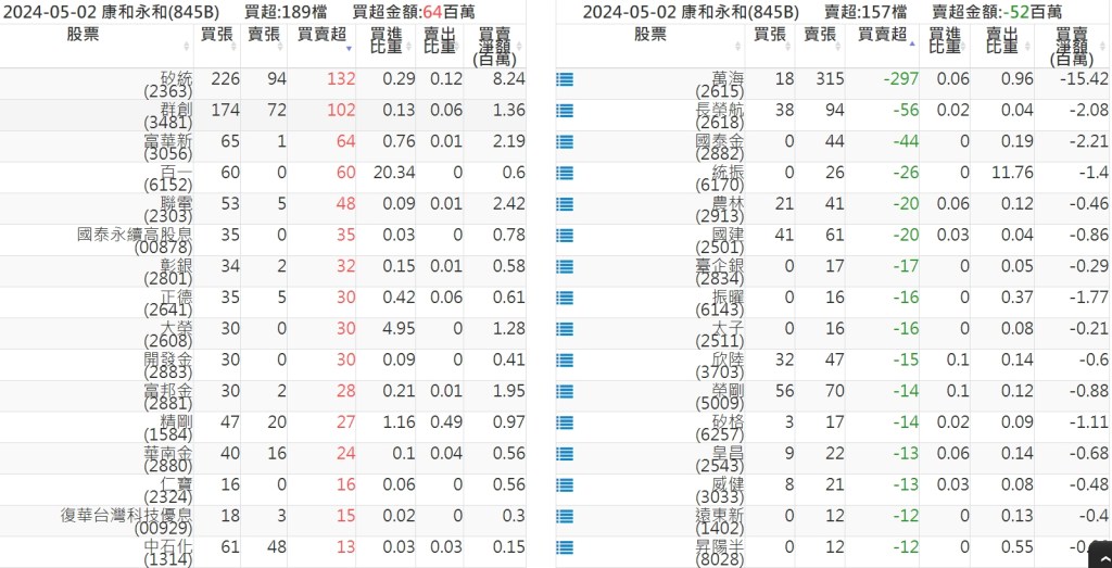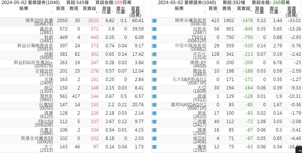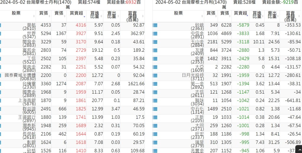 2024-0502關鍵券商買賣超 2024-05-02 股狗網小編 籌碼面每日資訊 發表留言 關鍵券商買賣超: 臺銀證券(1040): 台灣摩根士丹利(1470): 凱基台北(9268): 凱基信義(9216): 元大土城永寧(9875): 康和永和(845B) : 富邦建國(9658): 免責宣言 本網站文章所提供資訊僅供參考,並無任何推介買賣之意,投資人應自行承擔交易風險。 分享此文: 分享到 X(在新視窗中開啟) X 分享到 Facebook(在新視窗中開啟) Facebook 喜歡 正在載入...