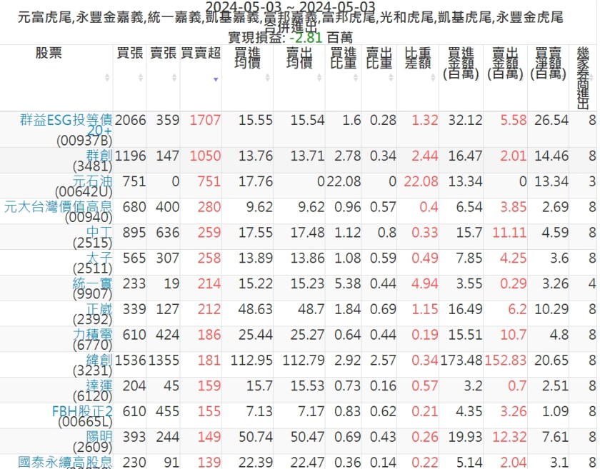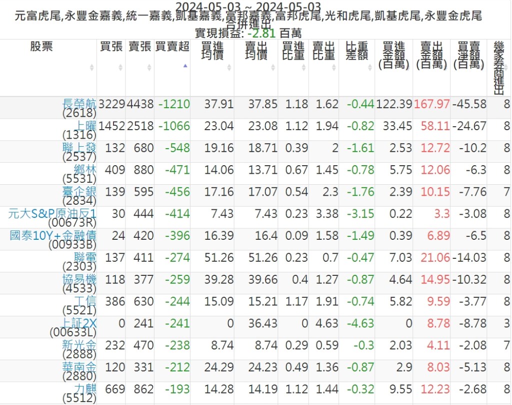 2024-0503主力買賣超個股 2024-05-03 股狗網小編 籌碼面每日資訊 發表留言 可參考下文 『如何查詢當沖、隔日沖分公司券商買賣』 主力當沖券商: 『元富虎尾』,『永豐金嘉義』,『統一嘉義』,『凱基嘉義』,『富邦嘉義』,『富邦虎尾』,『光和虎尾』,『凱基虎尾』,『永豐金虎尾』。 『當沖標的』 『買超股票』 『賣超股票』 免責宣言 本網站文章所提供資訊僅供參考,並無任何推介買賣之意,投資人應自行承擔交易風險。 分享此文: 分享到 X(在新視窗中開啟) X 分享到 Facebook(在新視窗中開啟) Facebook 喜歡 正在載入...