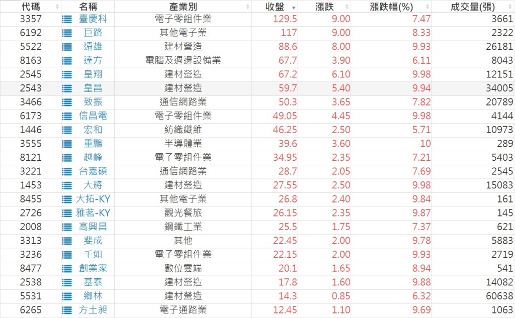 2024-0503日新高爆量上漲股 2024-05-03 股狗網小編 選股條件 發表留言 利用股狗選股的選股條件可以【挑選突破20日新高,爆量上漲起漲點股票】 1.股狗選股 https://www.stockdog.com.tw 2.選股條件: a.收盤價創20日新高 b.當日漲幅 > 2% C.成交量大於5日均量2倍 免責宣言 本網站文章所提供資訊僅供參考,並無任何推介買賣之意,投資人應自行承擔交易風險。 分享此文: 分享到 X(在新視窗中開啟) X 分享到 Facebook(在新視窗中開啟) Facebook 喜歡 正在載入...