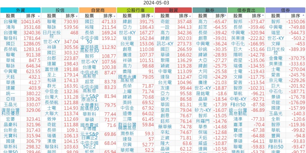 2024-0503市【外資、投信】買賣超個股 2024-05-04 股狗網小編 投資誌-大盤 發表留言 上市:【外資、投信】買超(依金額) (單位:百萬) 上市:【外資、投信】賣超(依金額) (單位:百萬) 上市:【外資、投信】買超(依張數) (單位:張數) 上市:【外資、投信】賣超(依張數) (單位:張數) 免責宣言 本網站文章所提供資訊僅供參考,並無任何推介買賣之意,投資人應自行承擔交易風險。 分享此文: 分享到 X(在新視窗中開啟) X 分享到 Facebook(在新視窗中開啟) Facebook 喜歡 正在載入...