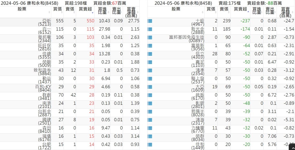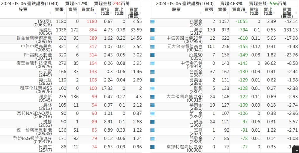 2024-0506關鍵券商買賣超 2024-05-06 股狗網小編 籌碼面每日資訊 發表留言 關鍵券商買賣超: 臺銀證券(1040): 台灣摩根士丹利(1470): 凱基台北(9268): 凱基信義(9216): 元大土城永寧(9875): 康和永和(845B) : 富邦建國(9658): 免責宣言 本網站文章所提供資訊僅供參考,並無任何推介買賣之意,投資人應自行承擔交易風險。 分享此文: 分享到 X(在新視窗中開啟) X 分享到 Facebook(在新視窗中開啟) Facebook 喜歡 正在載入...