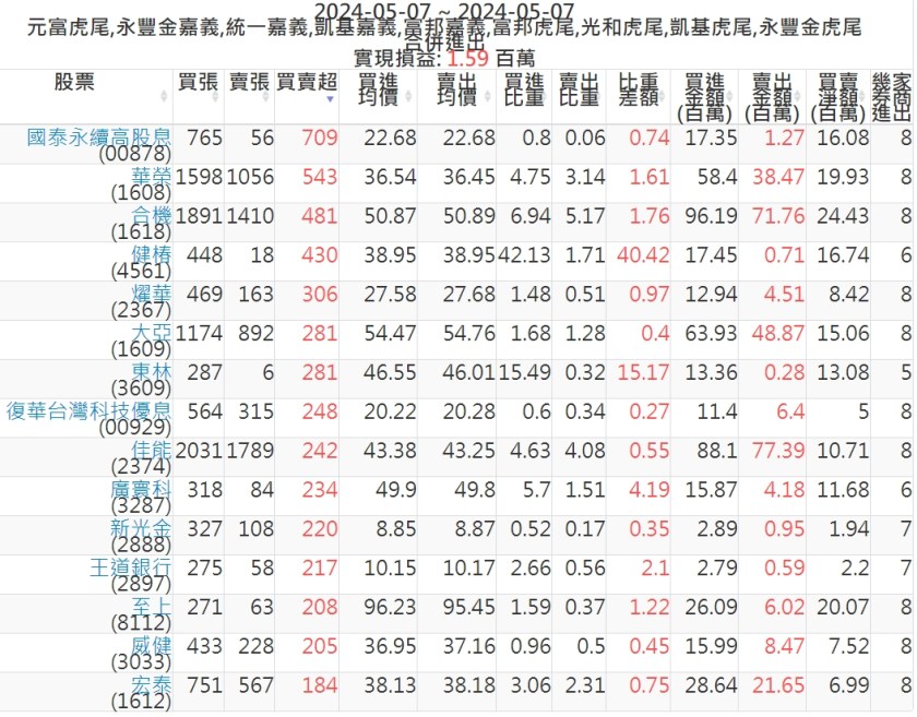 2024-0507主力買賣超個股 2024-05-07 股狗網小編 籌碼面每日資訊 發表留言 可參考下文 『如何查詢當沖、隔日沖分公司券商買賣』 主力當沖券商: 『元富虎尾』,『永豐金嘉義』,『統一嘉義』,『凱基嘉義』,『富邦嘉義』,『富邦虎尾』,『光和虎尾』,『凱基虎尾』,『永豐金虎尾』。 『當沖標的』 『買超股票』 『賣超股票』 免責宣言 本網站文章所提供資訊僅供參考,並無任何推介買賣之意,投資人應自行承擔交易風險。 分享此文: 分享到 X(在新視窗中開啟) X 分享到 Facebook(在新視窗中開啟) Facebook 喜歡 正在載入...