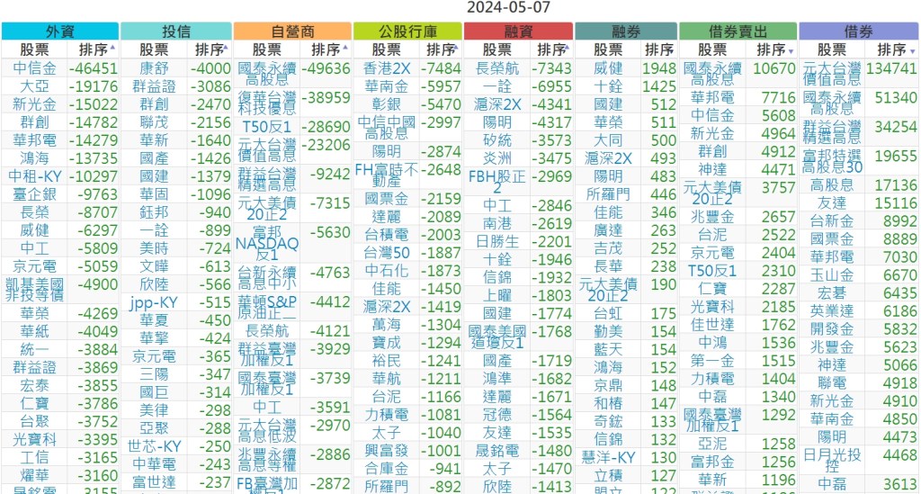 2024-0507市【外資、投信】買賣超個股 2024-05-08 股狗網小編 投資誌-大盤 發表留言 上市:【外資、投信】買超(依金額) (單位:百萬) 上市:【外資、投信】賣超(依金額) (單位:百萬) 上市:【外資、投信】買超(依張數) (單位:張數) 上市:【外資、投信】賣超(依張數) (單位:張數) 免責宣言 本網站文章所提供資訊僅供參考,並無任何推介買賣之意,投資人應自行承擔交易風險。 分享此文: 分享到 X(在新視窗中開啟) X 分享到 Facebook(在新視窗中開啟) Facebook 喜歡 正在載入...