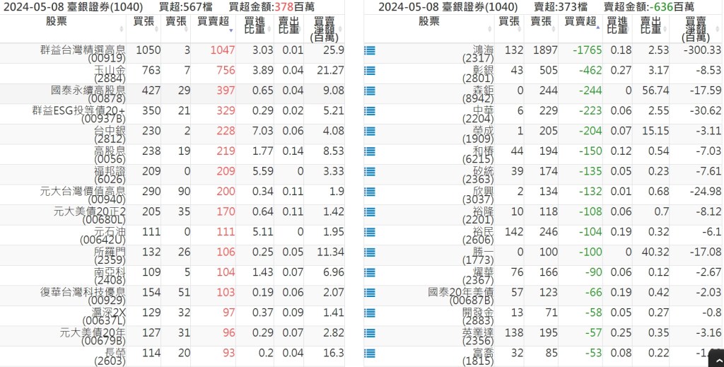 2024-0508關鍵券商買賣超 2024-05-08 股狗網小編 籌碼面每日資訊 發表留言 關鍵券商買賣超: 臺銀證券(1040): 台灣摩根士丹利(1470): 凱基台北(9268): 凱基信義(9216): 元大土城永寧(9875): 康和永和(845B) : 富邦建國(9658): 免責宣言 本網站文章所提供資訊僅供參考,並無任何推介買賣之意,投資人應自行承擔交易風險。 分享此文: 分享到 X(在新視窗中開啟) X 分享到 Facebook(在新視窗中開啟) Facebook 喜歡 正在載入...