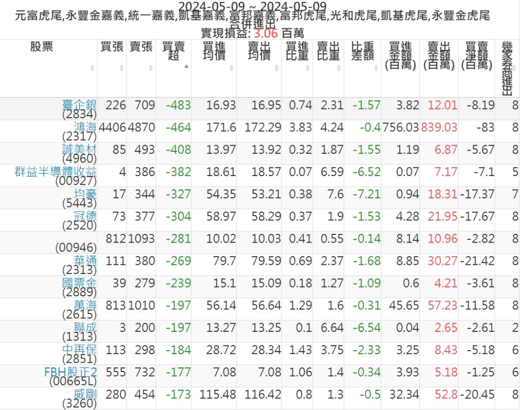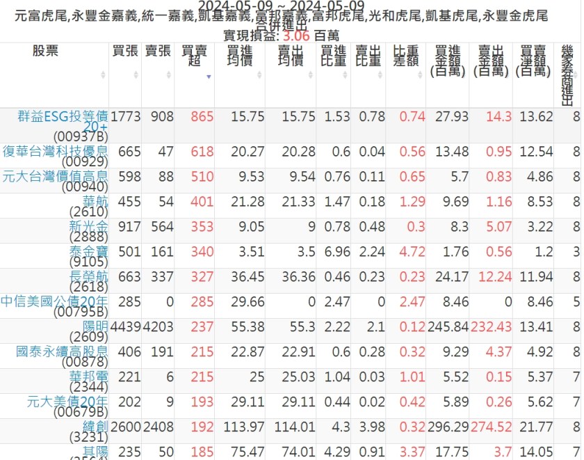 2024-0509主力買賣超個股 2024-05-09 股狗網小編 籌碼面每日資訊 發表留言 可參考下文 『如何查詢當沖、隔日沖分公司券商買賣』 主力當沖券商: 『元富虎尾』,『永豐金嘉義』,『統一嘉義』,『凱基嘉義』,『富邦嘉義』,『富邦虎尾』,『光和虎尾』,『凱基虎尾』,『永豐金虎尾』。 『當沖標的』 『買超股票』 『賣超股票』 免責宣言 本網站文章所提供資訊僅供參考,並無任何推介買賣之意,投資人應自行承擔交易風險。 分享此文: 分享到 X(在新視窗中開啟) X 分享到 Facebook(在新視窗中開啟) Facebook 喜歡 正在載入...