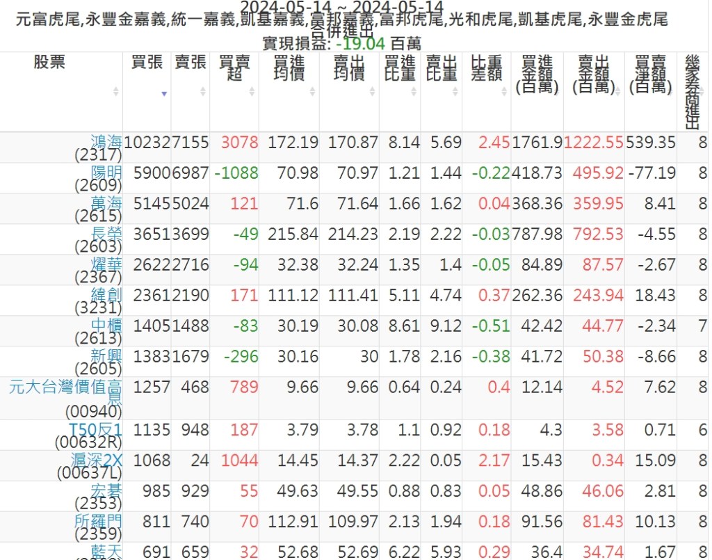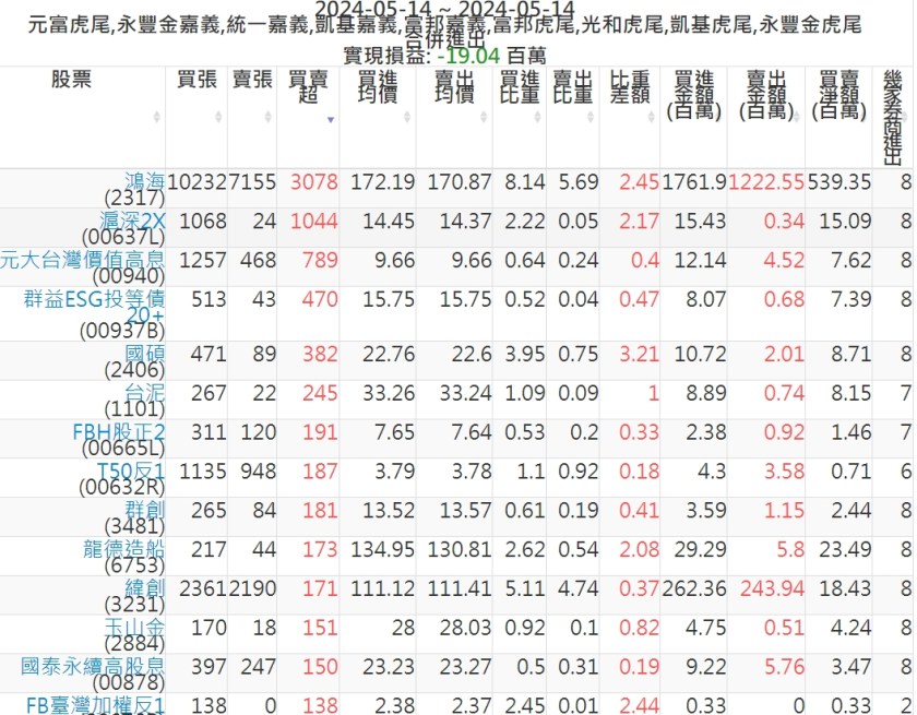 2024-0514主力買賣超個股 2024-05-14 股狗網小編 籌碼面每日資訊 發表留言 可參考下文 『如何查詢當沖、隔日沖分公司券商買賣』 主力當沖券商: 『元富虎尾』,『永豐金嘉義』,『統一嘉義』,『凱基嘉義』,『富邦嘉義』,『富邦虎尾』,『光和虎尾』,『凱基虎尾』,『永豐金虎尾』。 『當沖標的』 『買超股票』 『賣超股票』 免責宣言 本網站文章所提供資訊僅供參考,並無任何推介買賣之意,投資人應自行承擔交易風險。 分享此文: 按一下即可分享至 X(在新視窗中開啟) X 按一下以分享至 Facebook(在新視窗中開啟) Facebook 喜歡 正在載入...