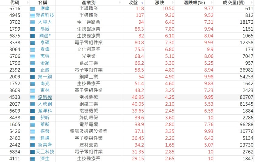 2024-0520日新高爆量上漲股 2024-05-20 股狗網小編 選股條件 發表留言 利用股狗選股的選股條件可以【挑選突破20日新高,爆量上漲起漲點股票】 1.股狗選股 https://www.stockdog.com.tw 2.選股條件: a.收盤價創20日新高 b.當日漲幅 > 2% C.成交量大於5日均量2倍 免責宣言 本網站文章所提供資訊僅供參考,並無任何推介買賣之意,投資人應自行承擔交易風險。 分享此文: 按一下即可分享至 X(在新視窗中開啟) X 按一下以分享至 Facebook(在新視窗中開啟) Facebook 喜歡 正在載入...