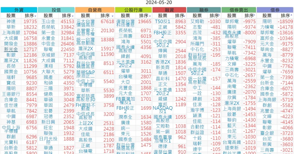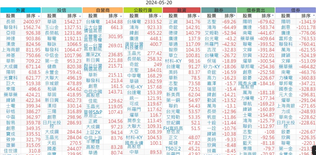 2024-0520市【外資、投信】買賣超個股 2024-05-21 股狗網小編 投資誌-大盤 發表留言 上市:【外資、投信】買超(依金額) (單位:百萬) 上市:【外資、投信】賣超(依金額) (單位:百萬) 上市:【外資、投信】買超(依張數) (單位:張數) 上市:【外資、投信】賣超(依張數) (單位:張數) 免責宣言 本網站文章所提供資訊僅供參考,並無任何推介買賣之意,投資人應自行承擔交易風險。 分享此文: 按一下即可分享至 X(在新視窗中開啟) X 按一下以分享至 Facebook(在新視窗中開啟) Facebook 喜歡 正在載入...