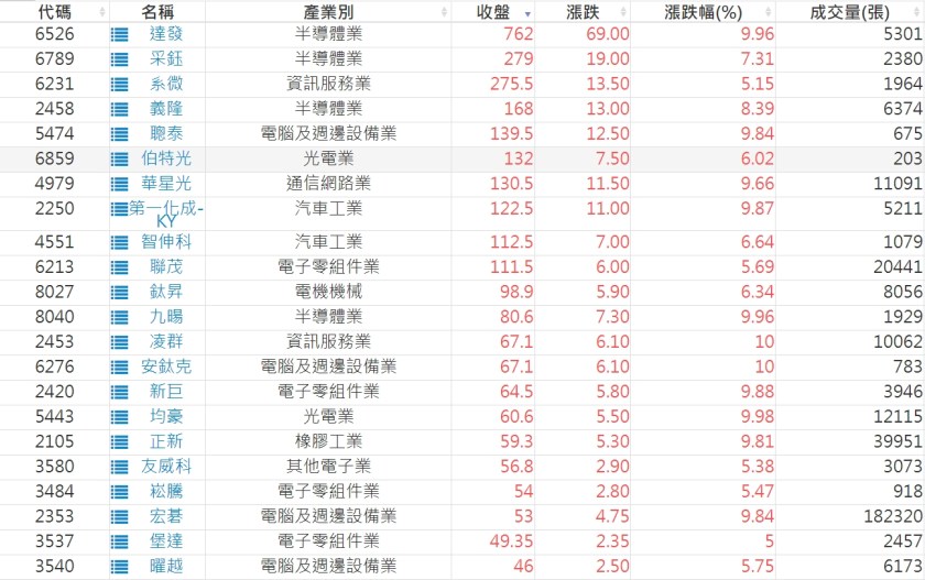2024-0522日新高爆量上漲股 2024-05-22 股狗網小編 選股條件 發表留言 利用股狗選股的選股條件可以【挑選突破20日新高,爆量上漲起漲點股票】 1.股狗選股 https://www.stockdog.com.tw 2.選股條件: a.收盤價創20日新高 b.當日漲幅 > 2% C.成交量大於5日均量2倍 免責宣言 本網站文章所提供資訊僅供參考,並無任何推介買賣之意,投資人應自行承擔交易風險。 分享此文: 按一下即可分享至 X(在新視窗中開啟) X 按一下以分享至 Facebook(在新視窗中開啟) Facebook 喜歡 正在載入...