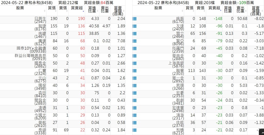 2024-0522關鍵券商買賣超 2024-05-22 股狗網小編 籌碼面每日資訊 發表留言 關鍵券商買賣超: 臺銀證券(1040): 台灣摩根士丹利(1470): 凱基台北(9268): 凱基信義(9216): 元大土城永寧(9875): 康和永和(845B) : 富邦建國(9658): 免責宣言 本網站文章所提供資訊僅供參考,並無任何推介買賣之意,投資人應自行承擔交易風險。 分享此文: 分享到 X(在新視窗中開啟) X 分享到 Facebook(在新視窗中開啟) Facebook 喜歡 正在載入...