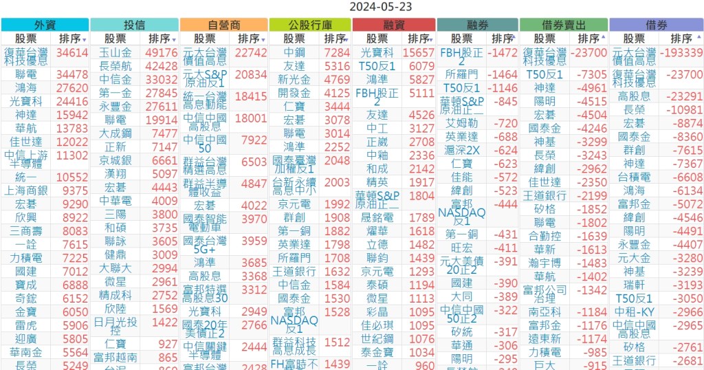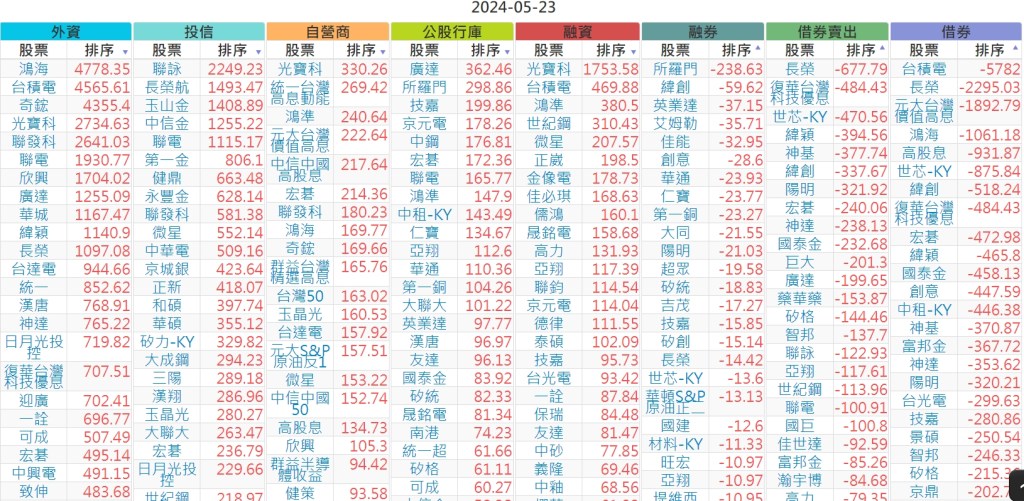 2024-0523市【外資、投信】買賣超個股 2024-05-24 股狗網小編 投資誌-大盤 發表留言 上市:【外資、投信】買超(依金額) (單位:百萬) 上市:【外資、投信】賣超(依金額) (單位:百萬) 上市:【外資、投信】買超(依張數) (單位:張數) 上市:【外資、投信】賣超(依張數) (單位:張數) 免責宣言 本網站文章所提供資訊僅供參考,並無任何推介買賣之意,投資人應自行承擔交易風險。 分享此文: 按一下即可分享至 X(在新視窗中開啟) X 按一下以分享至 Facebook(在新視窗中開啟) Facebook 喜歡 正在載入...