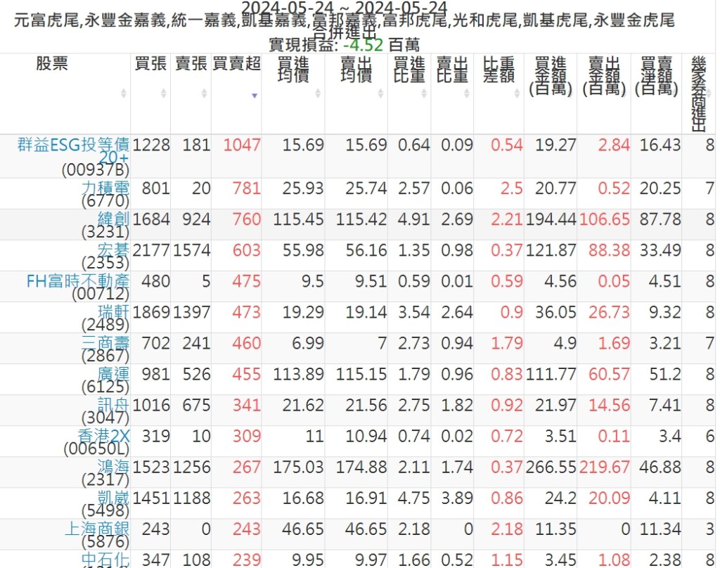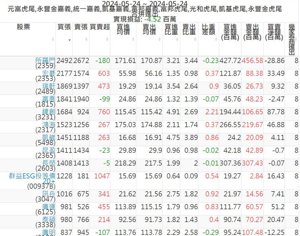 2024-0524主力買賣超個股 2024-05-24 股狗網小編 籌碼面每日資訊 發表留言 可參考下文 『如何查詢當沖、隔日沖分公司券商買賣』 主力當沖券商: 『元富虎尾』,『永豐金嘉義』,『統一嘉義』,『凱基嘉義』,『富邦嘉義』,『富邦虎尾』,『光和虎尾』,『凱基虎尾』,『永豐金虎尾』。 『當沖標的』 『買超股票』 『賣超股票』 免責宣言 本網站文章所提供資訊僅供參考,並無任何推介買賣之意,投資人應自行承擔交易風險。 分享此文: 按一下即可分享至 X(在新視窗中開啟) X 按一下以分享至 Facebook(在新視窗中開啟) Facebook 喜歡 正在載入...