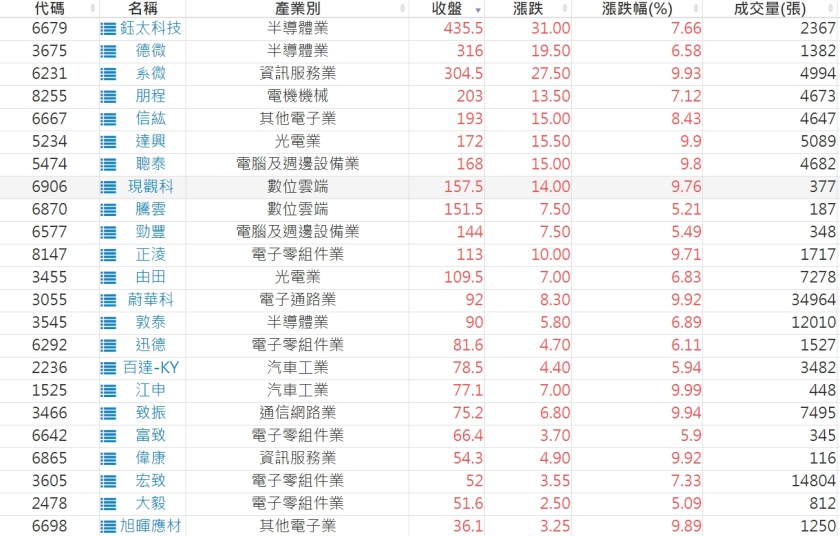 2024-0524日新高爆量上漲股 2024-05-24 股狗網小編 選股條件 發表留言 利用股狗選股的選股條件可以【挑選突破20日新高,爆量上漲起漲點股票】 1.股狗選股 https://www.stockdog.com.tw 2.選股條件: a.收盤價創20日新高 b.當日漲幅 > 2% C.成交量大於5日均量2倍 免責宣言 本網站文章所提供資訊僅供參考,並無任何推介買賣之意,投資人應自行承擔交易風險。 分享此文: 按一下即可分享至 X(在新視窗中開啟) X 按一下以分享至 Facebook(在新視窗中開啟) Facebook 喜歡 正在載入...