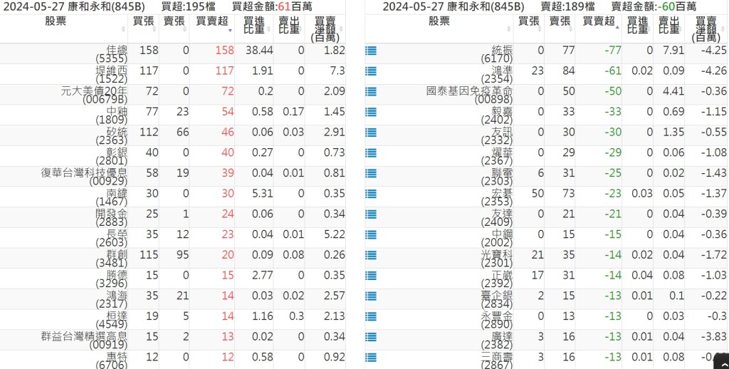 2024-0527關鍵券商買賣超 2024-05-27 股狗網小編 籌碼面每日資訊 發表留言 關鍵券商買賣超: 臺銀證券(1040): 台灣摩根士丹利(1470): 凱基台北(9268): 凱基信義(9216): 元大土城永寧(9875): 康和永和(845B) : 富邦建國(9658): 免責宣言 本網站文章所提供資訊僅供參考,並無任何推介買賣之意,投資人應自行承擔交易風險。 分享此文: 按一下即可分享至 X(在新視窗中開啟) X 按一下以分享至 Facebook(在新視窗中開啟) Facebook 喜歡 正在載入...