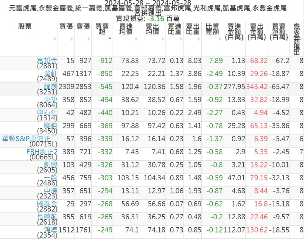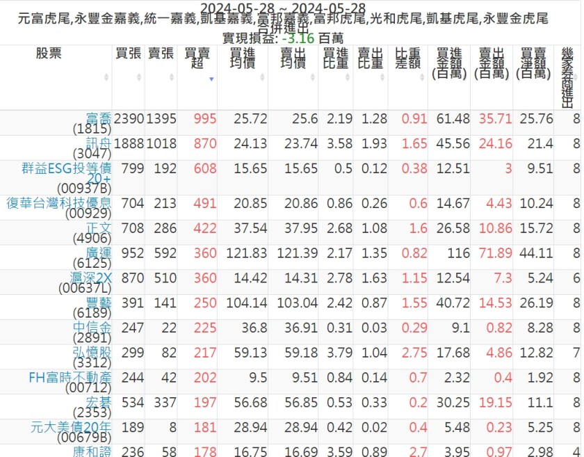 2024-0528主力買賣超個股 2024-05-28 股狗網小編 籌碼面每日資訊 發表留言 可參考下文 『如何查詢當沖、隔日沖分公司券商買賣』 主力當沖券商: 『元富虎尾』,『永豐金嘉義』,『統一嘉義』,『凱基嘉義』,『富邦嘉義』,『富邦虎尾』,『光和虎尾』,『凱基虎尾』,『永豐金虎尾』。 『當沖標的』 『買超股票』 『賣超股票』 免責宣言 本網站文章所提供資訊僅供參考,並無任何推介買賣之意,投資人應自行承擔交易風險。 分享此文: 按一下即可分享至 X(在新視窗中開啟) X 按一下以分享至 Facebook(在新視窗中開啟) Facebook 喜歡 正在載入...