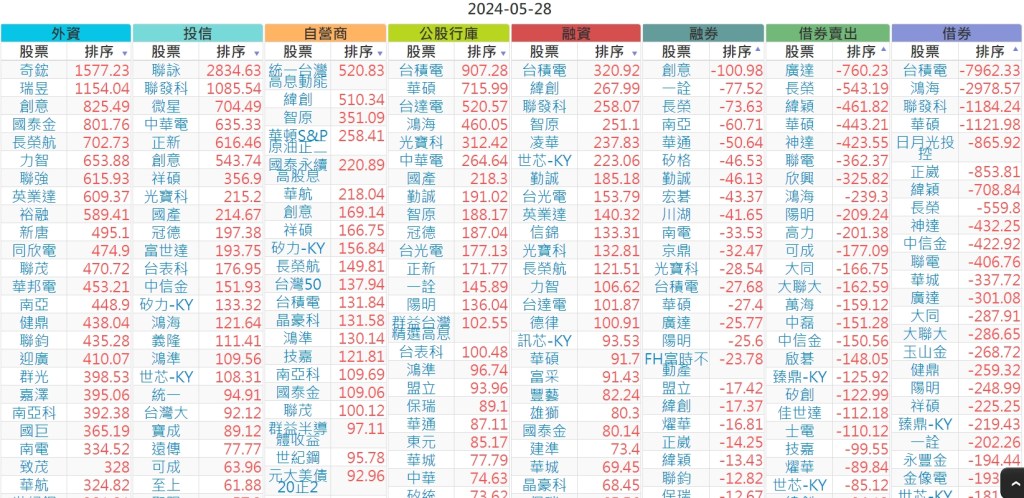 2024-0528市【外資、投信】買賣超個股 2024-05-29 股狗網小編 投資誌-大盤 發表留言 上市:【外資、投信】買超(依金額) (單位:百萬) 上市:【外資、投信】賣超(依金額) (單位:百萬) 上市:【外資、投信】買超(依張數) (單位:張數) 上市:【外資、投信】賣超(依張數) (單位:張數) 免責宣言 本網站文章所提供資訊僅供參考,並無任何推介買賣之意,投資人應自行承擔交易風險。 分享此文: 按一下即可分享至 X(在新視窗中開啟) X 按一下以分享至 Facebook(在新視窗中開啟) Facebook 喜歡 正在載入...