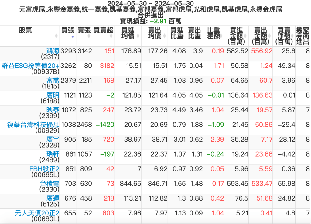 2024-0530主力買賣超個股 2024-05-30 股狗網小編 籌碼面每日資訊 發表留言 可參考下文 『如何查詢當沖、隔日沖分公司券商買賣』 主力當沖券商: 『元富虎尾』,『永豐金嘉義』,『統一嘉義』,『凱基嘉義』,『富邦嘉義』,『富邦虎尾』,『光和虎尾』,『凱基虎尾』,『永豐金虎尾』。 『當沖標的』 『買超股票』 『賣超股票』 免責宣言 本網站文章所提供資訊僅供參考,並無任何推介買賣之意,投資人應自行承擔交易風險。 分享此文: 按一下即可分享至 X(在新視窗中開啟) X 按一下以分享至 Facebook(在新視窗中開啟) Facebook 喜歡 正在載入...
