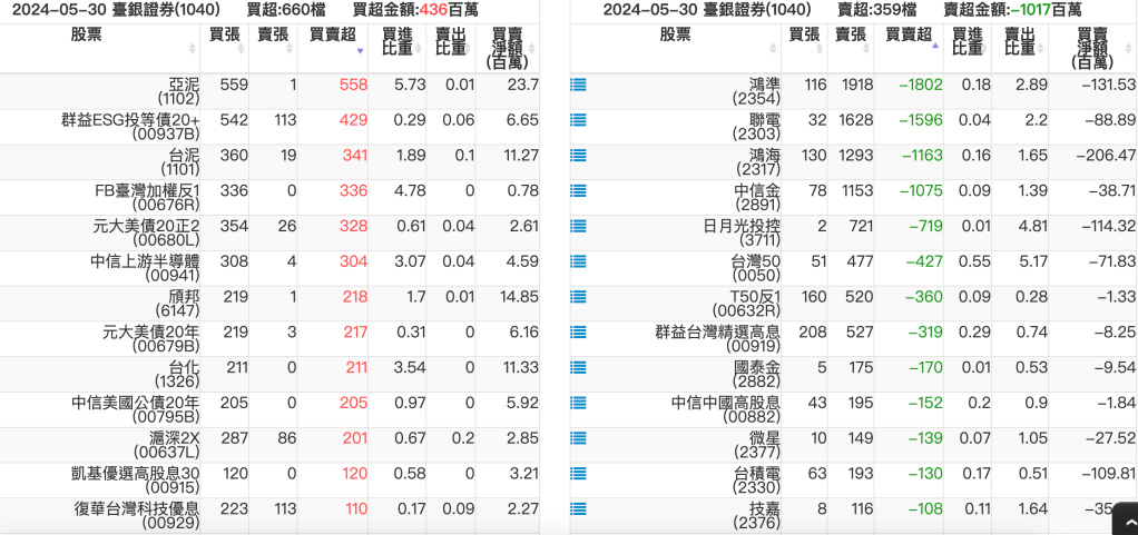 2024-0530關鍵券商買賣超 2024-05-30 股狗網小編 籌碼面每日資訊 發表留言 關鍵券商買賣超: 臺銀證券(1040): 台灣摩根士丹利(1470): 凱基台北(9268): 凱基信義(9216): 元大土城永寧(9875): 康和永和(845B) : 富邦建國(9658): 免責宣言 本網站文章所提供資訊僅供參考,並無任何推介買賣之意,投資人應自行承擔交易風險。 分享此文: 按一下即可分享至 X(在新視窗中開啟) X 按一下以分享至 Facebook(在新視窗中開啟) Facebook 喜歡 正在載入...