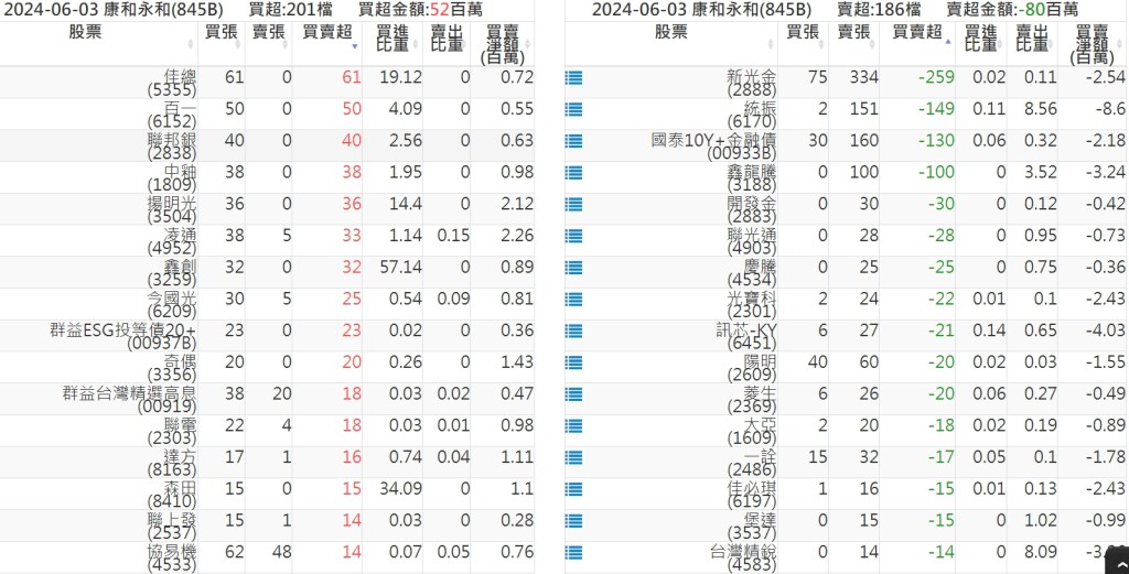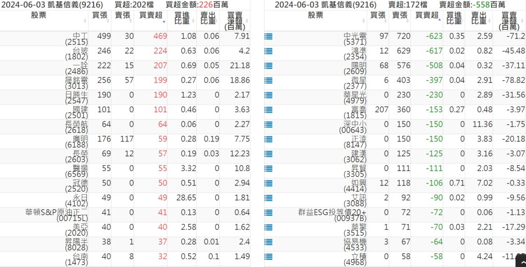 2024-0603關鍵券商買賣超 2024-06-03 股狗網小編 籌碼面每日資訊 發表留言 關鍵券商買賣超: 臺銀證券(1040): 台灣摩根士丹利(1470): 凱基台北(9268): 凱基信義(9216): 元大土城永寧(9875): 康和永和(845B) : 富邦建國(9658): 免責宣言 本網站文章所提供資訊僅供參考,並無任何推介買賣之意,投資人應自行承擔交易風險。 分享此文: 按一下即可分享至 X(在新視窗中開啟) X 按一下以分享至 Facebook(在新視窗中開啟) Facebook 喜歡 正在載入...