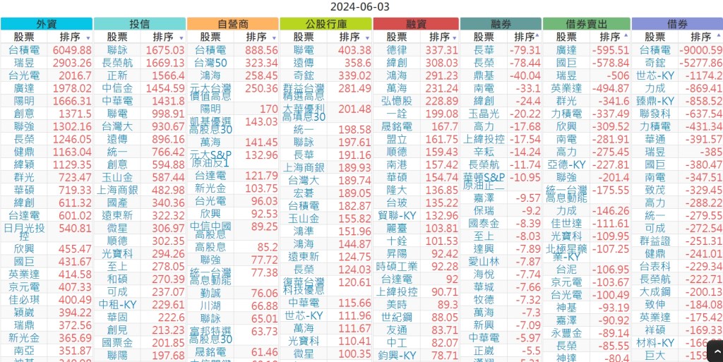 2024-0603市【外資、投信】買賣超個股 2024-06-04 股狗網小編 投資誌-大盤 發表留言 上市:【外資、投信】買超(依金額) (單位:百萬) 上市:【外資、投信】賣超(依金額) (單位:百萬) 上市:【外資、投信】買超(依張數) (單位:張數) 上市:【外資、投信】賣超(依張數) (單位:張數) 免責宣言 本網站文章所提供資訊僅供參考,並無任何推介買賣之意,投資人應自行承擔交易風險。 分享此文: 分享到 X(在新視窗中開啟) X 分享到 Facebook(在新視窗中開啟) Facebook 喜歡 正在載入...