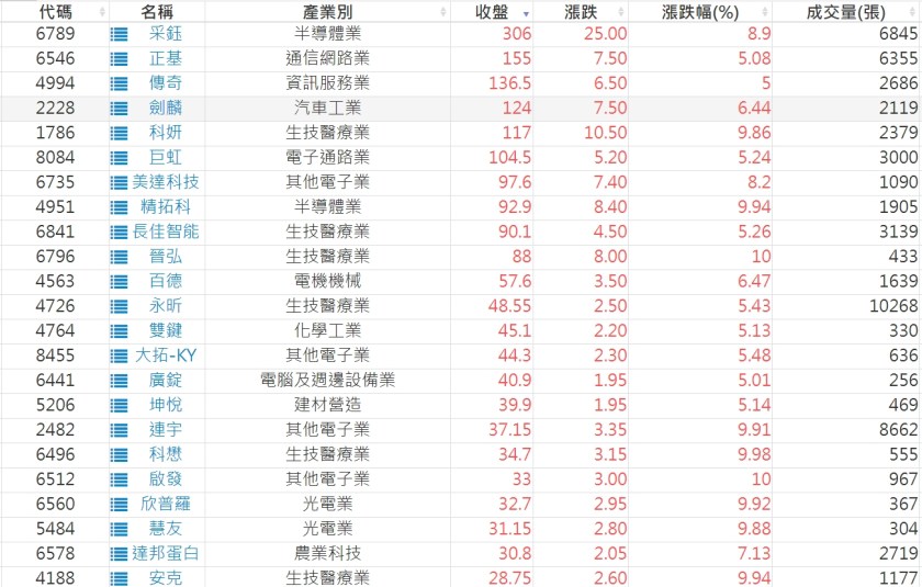 2024-0604日新高爆量上漲股 2024-06-04 股狗網小編 選股條件 發表留言 利用股狗選股的選股條件可以【挑選突破20日新高,爆量上漲起漲點股票】 1.股狗選股 https://www.stockdog.com.tw 2.選股條件: a.收盤價創20日新高 b.當日漲幅 > 2% C.成交量大於5日均量2倍 免責宣言 本網站文章所提供資訊僅供參考,並無任何推介買賣之意,投資人應自行承擔交易風險。 分享此文: 分享到 X(在新視窗中開啟) X 分享到 Facebook(在新視窗中開啟) Facebook 喜歡 正在載入...