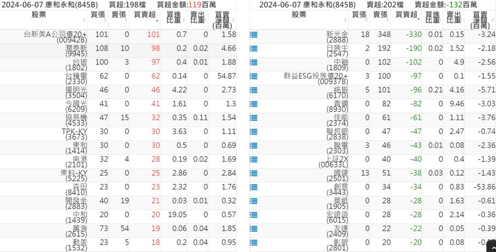 2024-0607鍵券商買賣超 2024-06-07 股狗網小編 籌碼面每日資訊 發表留言 關鍵券商買賣超: 臺銀證券(1040): 台灣摩根士丹利(1470): 凱基台北(9268): 凱基信義(9216): 元大土城永寧(9875): 康和永和(845B) : 富邦建國(9658): 免責宣言 本網站文章所提供資訊僅供參考,並無任何推介買賣之意,投資人應自行承擔交易風險。 分享此文: 分享到 X(在新視窗中開啟) X 分享到 Facebook(在新視窗中開啟) Facebook 喜歡 正在載入...