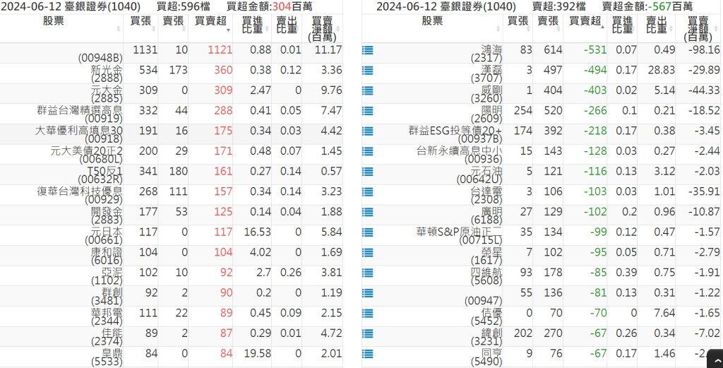 2024-0612鍵券商買賣超 2024-06-12 股狗網小編 籌碼面每日資訊 發表留言 關鍵券商買賣超: 臺銀證券(1040): 台灣摩根士丹利(1470): 凱基台北(9268): 凱基信義(9216): 元大土城永寧(9875): 康和永和(845B) : 富邦建國(9658): 免責宣言 本網站文章所提供資訊僅供參考,並無任何推介買賣之意,投資人應自行承擔交易風險。 分享此文: 分享到 X(在新視窗中開啟) X 分享到 Facebook(在新視窗中開啟) Facebook 喜歡 正在載入...