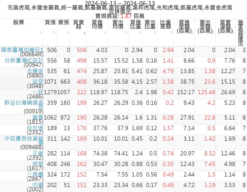 2024-0613主力買賣超個股 2024-06-13 股狗網小編 籌碼面每日資訊 發表留言 可參考下文 『如何查詢當沖、隔日沖分公司券商買賣』 主力當沖券商: 『元富虎尾』,『永豐金嘉義』,『統一嘉義』,『凱基嘉義』,『富邦嘉義』,『富邦虎尾』,『光和虎尾』,『凱基虎尾』,『永豐金虎尾』。 『當沖標的』 『買超股票』 『賣超股票』 免責宣言 本網站文章所提供資訊僅供參考,並無任何推介買賣之意,投資人應自行承擔交易風險。 分享此文: 分享到 X(在新視窗中開啟) X 分享到 Facebook(在新視窗中開啟) Facebook 喜歡 正在載入...