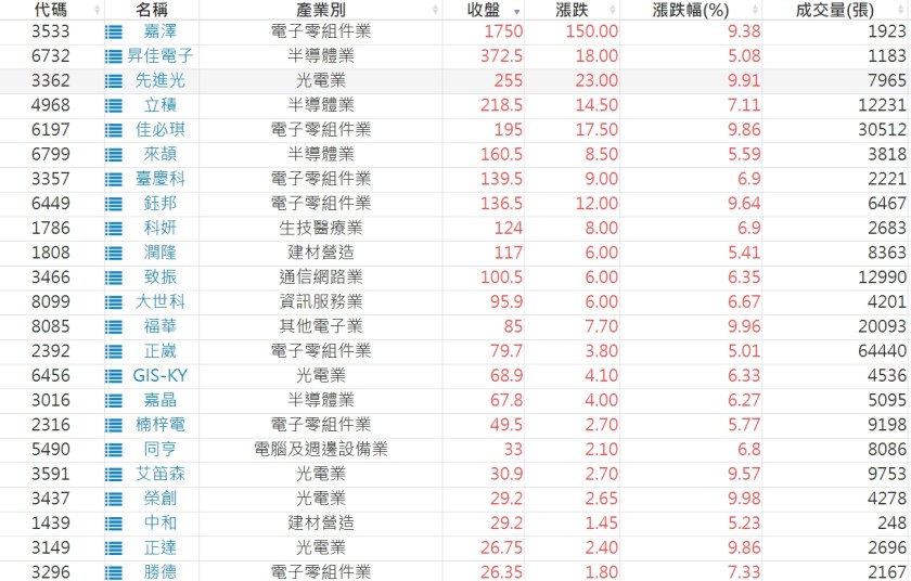 2024-0614日新高爆量上漲股 2024-06-14 股狗網小編 選股條件 發表留言 利用股狗選股的選股條件可以【挑選突破20日新高,爆量上漲起漲點股票】 1.股狗選股 https://www.stockdog.com.tw 2.選股條件: a.收盤價創20日新高 b.當日漲幅 > 2% C.成交量大於5日均量2倍 免責宣言 本網站文章所提供資訊僅供參考,並無任何推介買賣之意,投資人應自行承擔交易風險。 分享此文: 分享到 X(在新視窗中開啟) X 分享到 Facebook(在新視窗中開啟) Facebook 喜歡 正在載入...