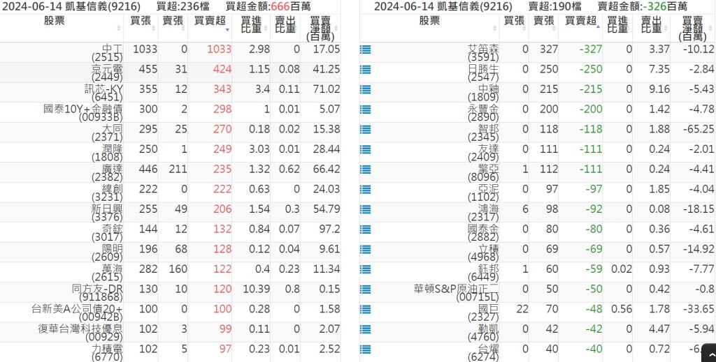 2024-0614鍵券商買賣超 2024-06-14 股狗網小編 籌碼面每日資訊 發表留言 關鍵券商買賣超: 臺銀證券(1040): 台灣摩根士丹利(1470): 凱基台北(9268): 凱基信義(9216): 元大土城永寧(9875): 康和永和(845B) : 富邦建國(9658): 免責宣言 本網站文章所提供資訊僅供參考,並無任何推介買賣之意,投資人應自行承擔交易風險。 分享此文: 分享到 X(在新視窗中開啟) X 分享到 Facebook(在新視窗中開啟) Facebook 喜歡 正在載入...