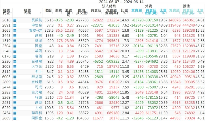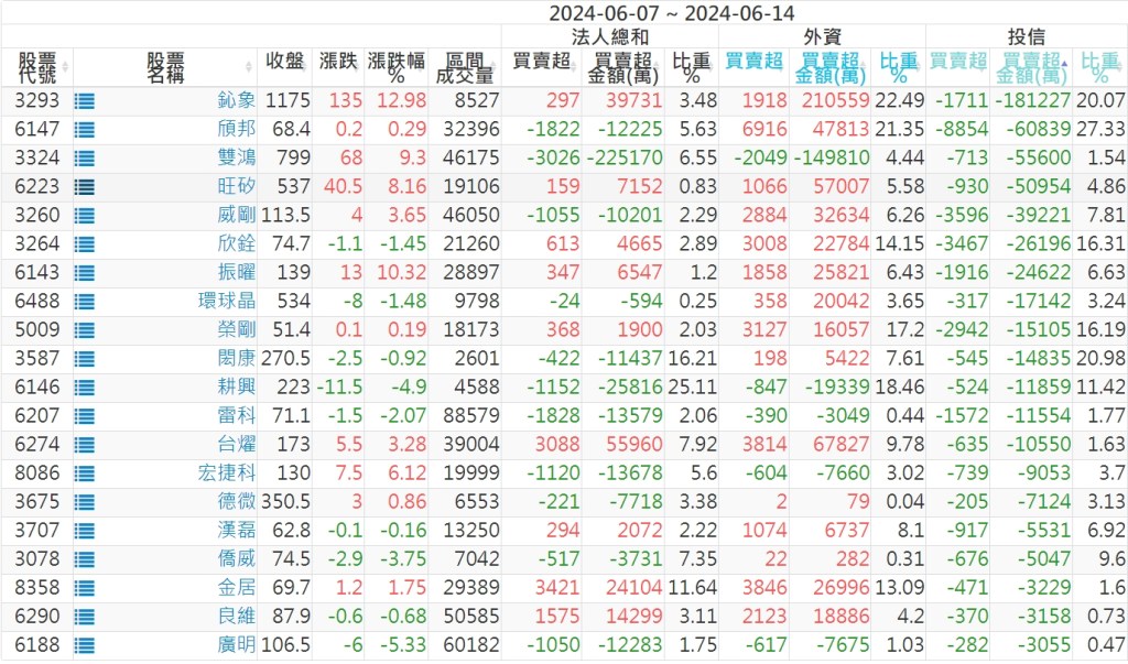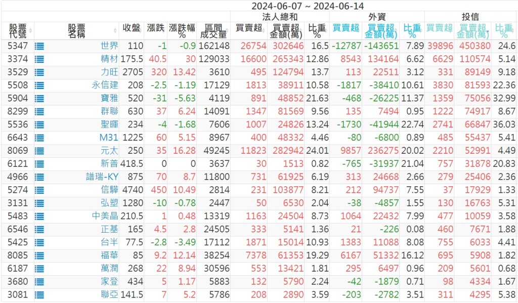 2024/06/07~2024/06/14近5日【投信】買賣超個股 2024-06-16 股狗網小編 投資誌-大盤 發表留言 【上市投信買超個股】(以金額排行,單位:萬) 【上市投信賣超個股】(以金額排行,單位:萬) 【上櫃投信買超個股】(以金額排行,單位:萬) 【上櫃投信賣超個股】(以金額排行,單位:萬) 免責宣言 本網站文章所提供資訊僅供參考,並無任何推介買賣之意,投資人應自行承擔交易風險。 分享此文: 分享到 X(在新視窗中開啟) X 分享到 Facebook(在新視窗中開啟) Facebook 喜歡 正在載入...