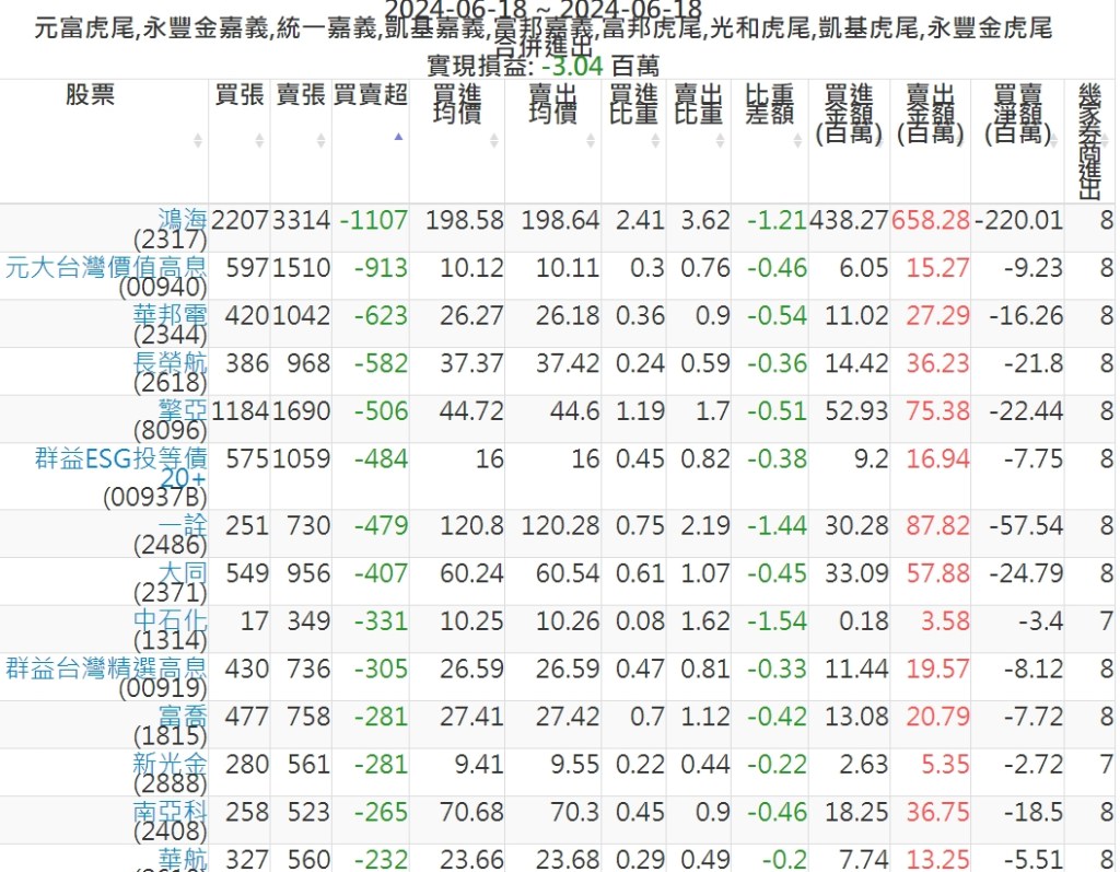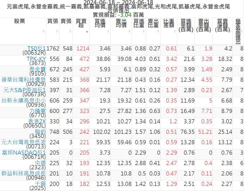 2024-0618主力買賣超個股 2024-06-18 股狗網小編 籌碼面每日資訊 發表留言 可參考下文 『如何查詢當沖、隔日沖分公司券商買賣』 主力當沖券商: 『元富虎尾』,『永豐金嘉義』,『統一嘉義』,『凱基嘉義』,『富邦嘉義』,『富邦虎尾』,『光和虎尾』,『凱基虎尾』,『永豐金虎尾』。 『當沖標的』 『買超股票』 『賣超股票』 免責宣言 本網站文章所提供資訊僅供參考,並無任何推介買賣之意,投資人應自行承擔交易風險。 分享此文: 分享到 X(在新視窗中開啟) X 分享到 Facebook(在新視窗中開啟) Facebook 喜歡 正在載入...