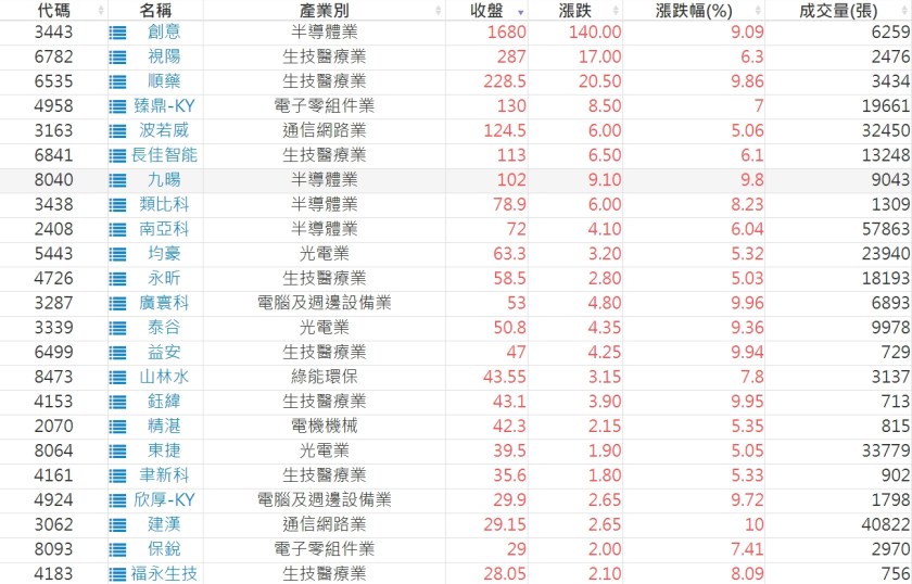 2024-0618日新高爆量上漲股 2024-06-18 股狗網小編 選股條件 發表留言 利用股狗選股的選股條件可以【挑選突破20日新高,爆量上漲起漲點股票】 1.股狗選股 https://www.stockdog.com.tw 2.選股條件: a.收盤價創20日新高 b.當日漲幅 > 2% C.成交量大於5日均量2倍 免責宣言 本網站文章所提供資訊僅供參考,並無任何推介買賣之意,投資人應自行承擔交易風險。 分享此文: 分享到 X(在新視窗中開啟) X 分享到 Facebook(在新視窗中開啟) Facebook 喜歡 正在載入...