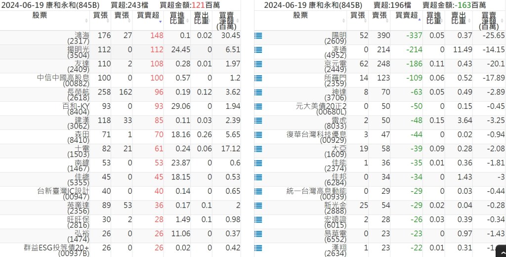 2024-0619鍵券商買賣超 2024-06-19 股狗網小編 籌碼面每日資訊 發表留言 關鍵券商買賣超: 臺銀證券(1040): 台灣摩根士丹利(1470): 凱基台北(9268): 凱基信義(9216): 元大土城永寧(9875): 康和永和(845B) : 富邦建國(9658): 免責宣言 本網站文章所提供資訊僅供參考,並無任何推介買賣之意,投資人應自行承擔交易風險。 分享此文: 分享到 X(在新視窗中開啟) X 分享到 Facebook(在新視窗中開啟) Facebook 喜歡 正在載入...