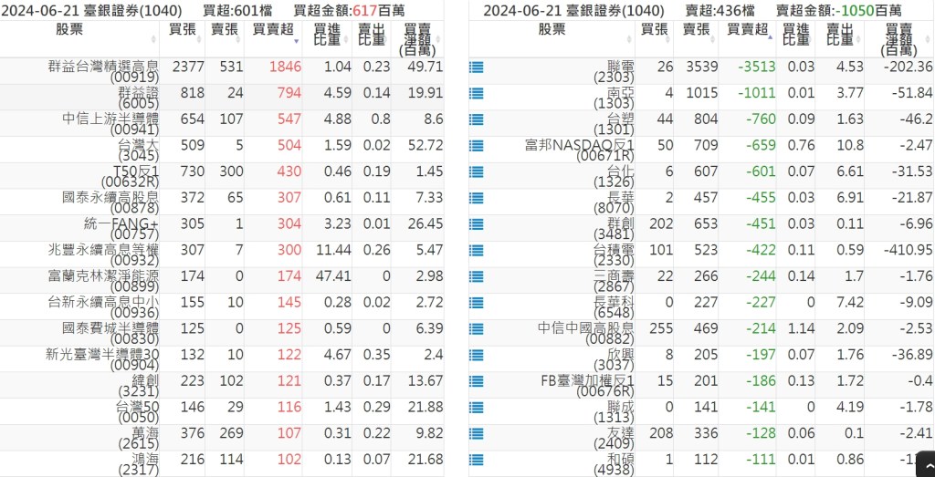 2024-0621鍵券商買賣超 2024-06-21 股狗網小編 籌碼面每日資訊 發表留言 關鍵券商買賣超: 臺銀證券(1040): 台灣摩根士丹利(1470): 凱基台北(9268): 凱基信義(9216): 元大土城永寧(9875): 康和永和(845B) : 富邦建國(9658): 免責宣言 本網站文章所提供資訊僅供參考,並無任何推介買賣之意,投資人應自行承擔交易風險。 分享此文: 分享到 X(在新視窗中開啟) X 分享到 Facebook(在新視窗中開啟) Facebook 喜歡 正在載入...