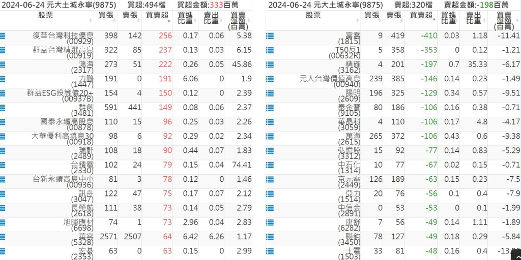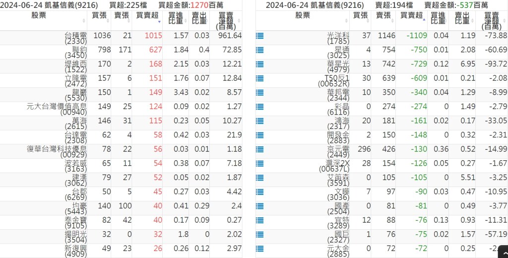 2024-0624鍵券商買賣超 2024-06-24 股狗網小編 籌碼面每日資訊 發表留言 關鍵券商買賣超: 臺銀證券(1040): 台灣摩根士丹利(1470): 凱基台北(9268): 凱基信義(9216): 元大土城永寧(9875): 康和永和(845B) : 富邦建國(9658): 免責宣言 本網站文章所提供資訊僅供參考,並無任何推介買賣之意,投資人應自行承擔交易風險。 分享此文: 按一下即可分享至 X(在新視窗中開啟) X 按一下以分享至 Facebook(在新視窗中開啟) Facebook 喜歡 正在載入...