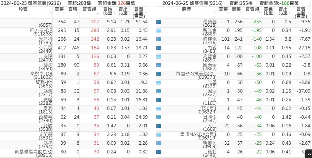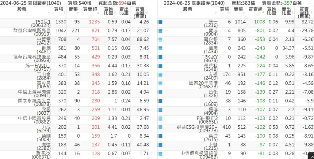 2024-0625關鍵券商買賣超 2024-06-25 股狗網小編 籌碼面每日資訊 發表留言 關鍵券商買賣超: 臺銀證券(1040): 台灣摩根士丹利(1470): 凱基台北(9268): 凱基信義(9216): 元大土城永寧(9875): 康和永和(845B) : 富邦建國(9658): 免責宣言 本網站文章所提供資訊僅供參考,並無任何推介買賣之意,投資人應自行承擔交易風險。 分享此文: 按一下即可分享至 X(在新視窗中開啟) X 按一下以分享至 Facebook(在新視窗中開啟) Facebook 喜歡 正在載入...