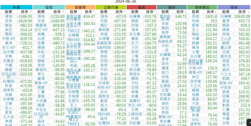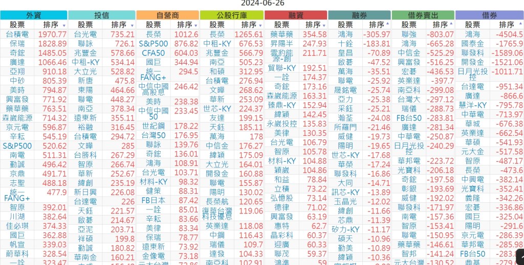 2024-0626市【外資、投信】買賣超個股 2024-06-27 股狗網小編 投資誌-大盤 發表留言 上市:【外資、投信】買超(依金額) (單位:百萬) 上市:【外資、投信】賣超(依金額) (單位:百萬) 上市:【外資、投信】買超(依張數) (單位:張數) 上市:【外資、投信】賣超(依張數) (單位:張數) 免責宣言 本網站文章所提供資訊僅供參考,並無任何推介買賣之意,投資人應自行承擔交易風險。 分享此文: 按一下即可分享至 X(在新視窗中開啟) X 按一下以分享至 Facebook(在新視窗中開啟) Facebook 喜歡 正在載入...