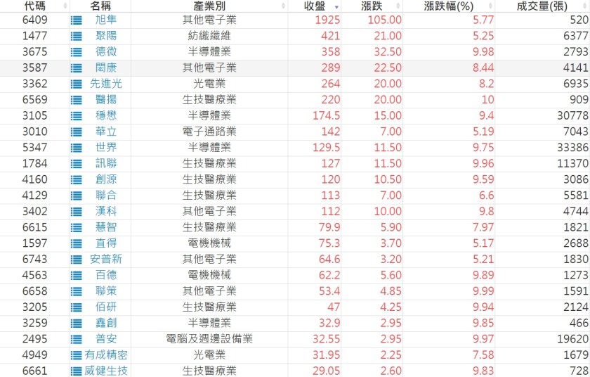 2024-0628日新高爆量上漲股 2024-06-28 股狗網小編 選股條件 發表留言 利用股狗選股的選股條件可以【挑選突破20日新高,爆量上漲起漲點股票】 1.股狗選股 https://www.stockdog.com.tw 2.選股條件: a.收盤價創20日新高 b.當日漲幅 > 2% C.成交量大於5日均量2倍 免責宣言 本網站文章所提供資訊僅供參考,並無任何推介買賣之意,投資人應自行承擔交易風險。 分享此文: 按一下即可分享至 X(在新視窗中開啟) X 按一下以分享至 Facebook(在新視窗中開啟) Facebook 喜歡 正在載入...